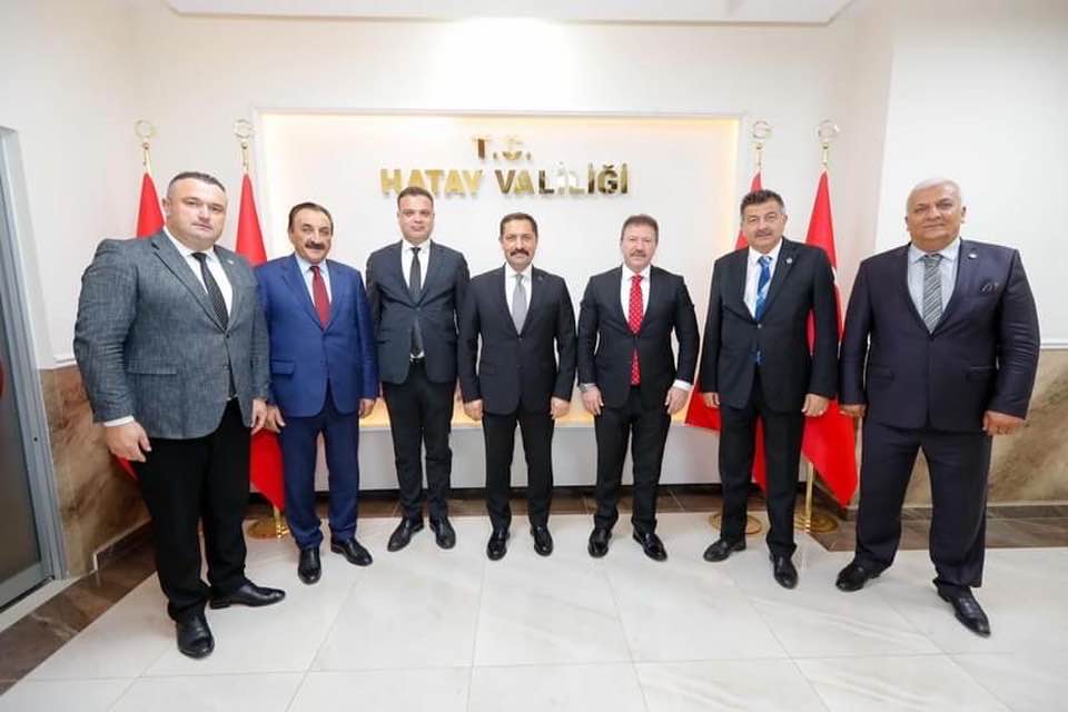 Genel Başkanımız Mehmet Yiğiner, Hatay Valisi Sayın Mustafa Masatlı’yı Hatay ESOB Başkanı Aziz Fatih Yılmaz, TŞOF Başkan Vekilimiz İbrahim Yılmaz, Yönetim Kurulu Üyelerimiz Yıldırım Kaya, Mehmet Emin Tuğrul ve Koray Güven ile birlikte ziyaret etti.
